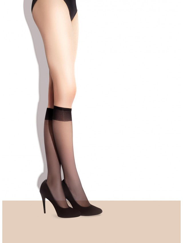 Des mi-bas transparents fins et élégants avec une bande confortable pour maintenir sans compression, un accessoire subtil à ajouter à n'importe quelle robe, jupe longue ou pantalon.